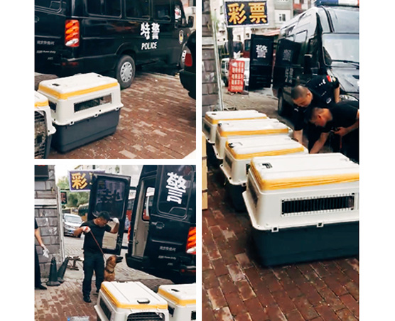 英國斗牛犬(美國——中國)因?yàn)槌赡暧⑴O奶?**怕中暑,專業(yè)的寵物保姆給寶寶航空箱放了冷凍礦泉水瓶來給它降溫。即使長途運(yùn)輸,寶寶狀態(tài)非常好,在辦公室等待主人接他回家,主人非常滿意,感恩