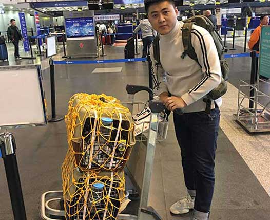 這兩只寶寶是(中國——菲律賓),狗狗狀態(tài)非常好,帶他們上完廁所,準(zhǔn)備隨機(jī)進(jìn)入有氧艙一起起飛。